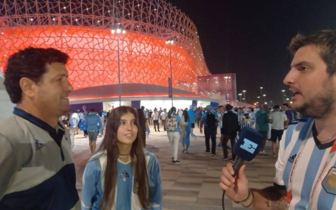 Ya en las inmediaciones del Ahmad Bin Ali me encontré con Alfreso y Camila Landucci, padre e hija hinchas de Gimnasia que habían hecho escala unos días en Madrid y acompañan a la Selección desde el primer partido ante Arabia. También tienen planeado quedarse hasta que el equipo de Scaloni tenga vida aquí en Qatar. En el post y con toda la adrenalina de la victoria encima, nos cruzamos con otra tripera. Rita nos contó que su trabajo es en una aerolínea de Europa y aprovechó sus días de trabajo para alentar al equipo albiceleste, mañana sigue su curso y regresa al viejo continente. Nadie se quiere perder a este equipo que no le sobra nada, pero que parece ser cada vez más sólido. Pasito a pasito va el equipo de Scaloni, y por supuesto, va acompañado de platenses en Doha.