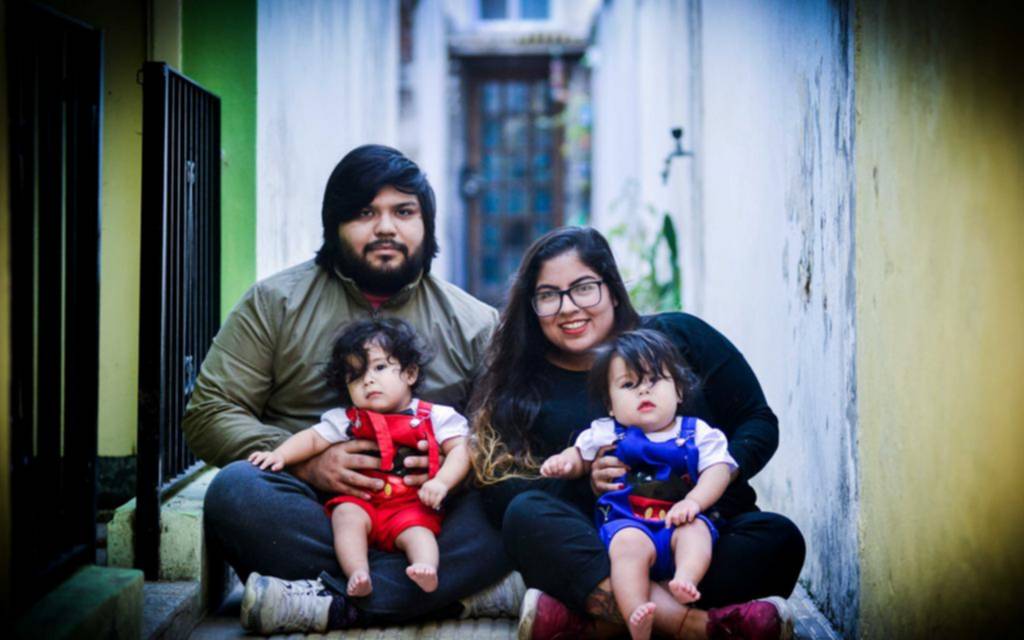 El noviazgo prácticamente se inició junto con la cuarentena por el coronavirus, en marzo de 2020. “En ese momento estaba en Isidro Casanova. Como perdí el DNI me quedé acá”, apunta Castillo. El cierre fue duro. Ambos quedaron sin trabajo. “Empezamos a hacer bolas de fraile para vender. A los 2 meses y medio quedó embarazada. Entonces, nos dedicamos a hacer delivery y en enero de 2021 nos casamos”, cuenta el expizzero que ahora se dedica a la reparación de equipos de informática. “Me preguntó en diciembre `que tenés que hacer´ y dije `nada´. Me dijo que había sacado turno para casarnos”, apunta Castillo. Las sorpresas ya eran una constante en la vida de la pareja: “Pensamos que era uno solo y cuando fuimos a la ecografía nos dijeron que eran dos. Ayer cumplieron un año”, dice el técnico informático sobre el capítulo de los mellizos.