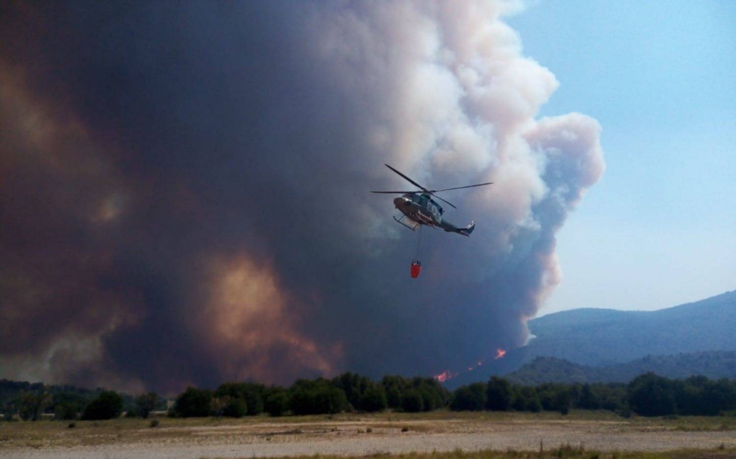 Las condiciones meteorológicas son apropiadas para el combate de las llamas, ya que anoche llovió sobre la comarca y hoy está nublado, con algo de humedad en el ambiente.