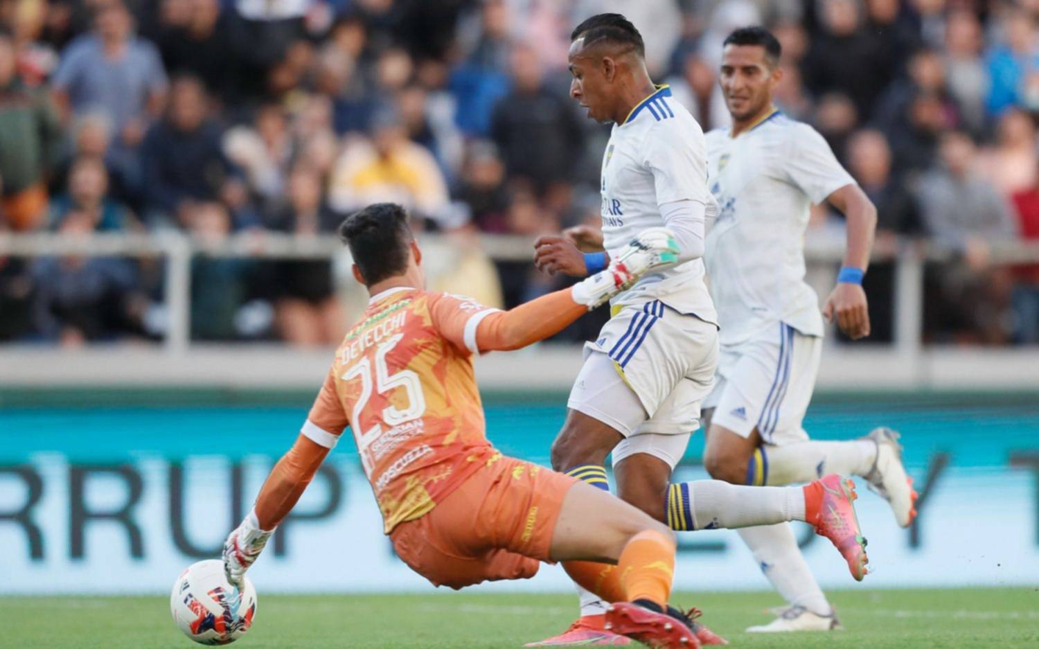 El equipo de Martín Palermo intentó ajustar la marca en el arranque del complemento y adelantarse en el campo, pero antes de que lograra acomodarse un pase largo de Jorman Campuzano habilitó a su compatriota Villa, que encaró y superó en velocidad a Román y definió con un derechazo potente al segundo palo ante el achique de Devecchi, para poner el 2-0 a los 4 minutos.