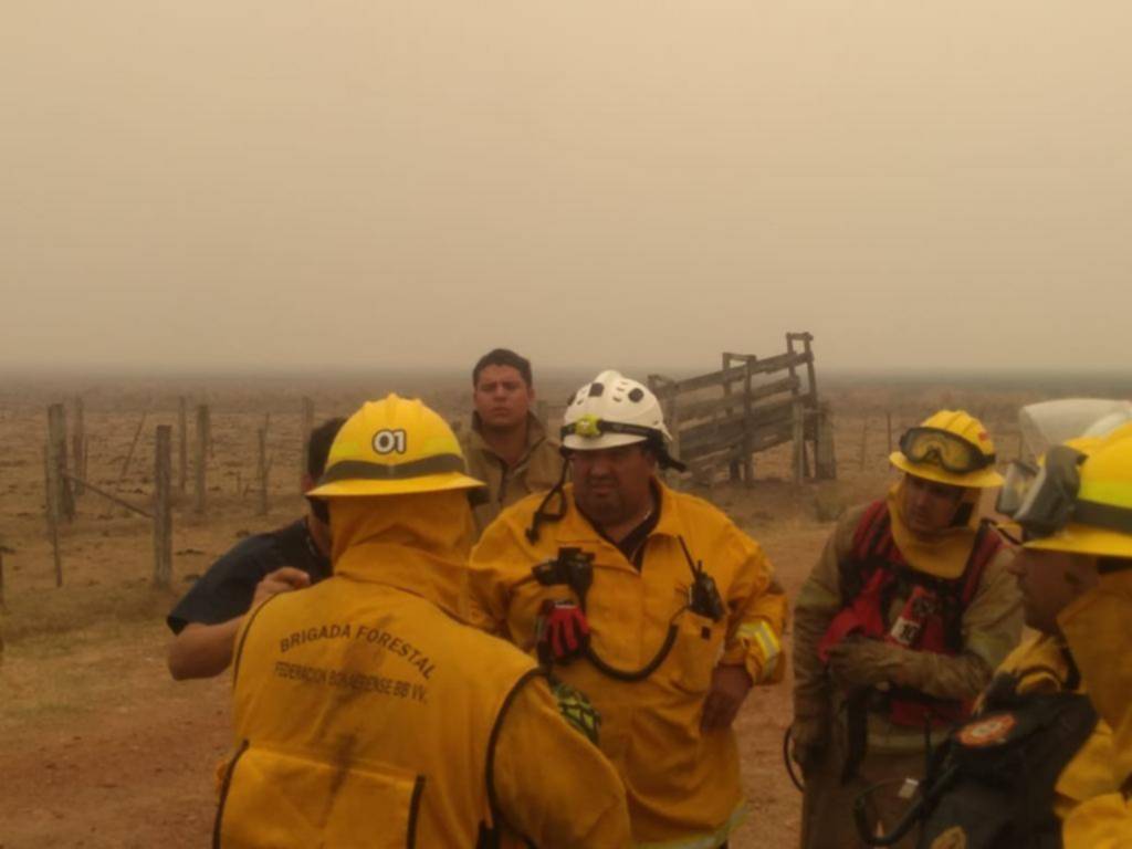 Integrados a la Federación Bonaerense de Bomberos Voluntarios, estos tres hombres de Ensenada le ponen el cuerpo desde el fin de semana a las extendidas llamaradas que se resisten a ser apagadas y que, por caso, amenazan la vida en Torrent, un pueblo ubicado en el Departamento de General Alvear y con poco más de 200 habitantes.