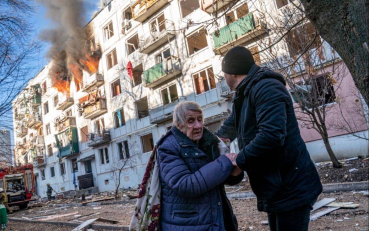 "¡Qué país de mierda!", grita una mujer ante el cadáver de un hombre, muerto durante un bombardeo en un barrio residencial en Chuguev, en el este de Ucrania, uno de los primeros objetivos de la invasión lanzada por Rusia este jueves. Cerca del cadáver está postrado su hijo, que llora. "Le había dicho que nos fuésemos", repite incansablemente el treintañero, junto a los restos calcinados de un viejo vehículo de la marca Lada.