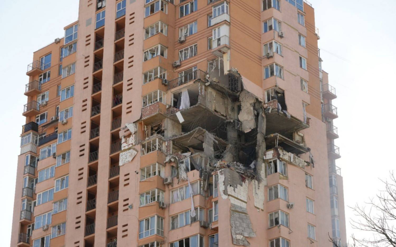 El misil cayó entre los pisos 18º y 21º del edificio, según estas fuentes, que añadieron que se estaba evacuando el lugar. Las imágenes difundidas en las redes sociales muestran un alto inmueble con la fachada destrozada y escombros en la calle abajo.