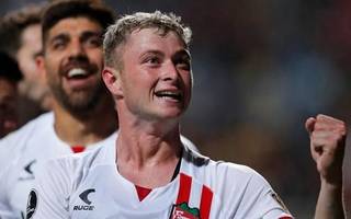 matías pellegrini ya convirtió y sale a festejar el gol de la victoria en viña del mar sobre everton /afp