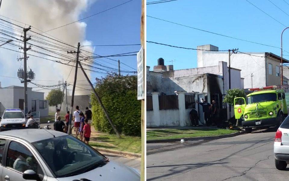 Una casa en donde en el frente funcionaba un local de venta de artículos de limpieza que funcionaba en un garage de una vivienda se quemó por completo. Ocurrió esta tarde en Villa Elvira.