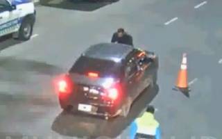 De acuerdo al informe policial, el agente que se encontraba agarrado al capot salió despedido cuando el conductor frenó y dobló en una esquina y, como consecuencia, impactó sobre la cinta asfáltica.