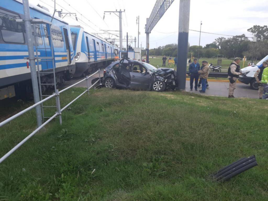 Con la trompa del rodado, un VW Gol Trend, sobre los rieles, la formación del Tren Roca, que circulaba en el sentido a la estación de 1 y 44, la impactó de lleno y le hizo dar una especie de trompo, hasta que se incrustó contra una columna de hormigón.