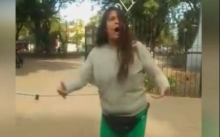 La vecina dijo que el cruce con las travestis que participaron del evento se produjo tras la colocación de un cartel con la leyenda "Plaza La Moma", con la cual recordaron a la travesti asesinada en 2011.