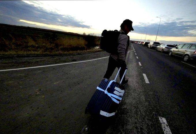 “Mis colegas y yo caminamos kilómetros hasta la frontera polaca después de abandonar nuestro automóvil en la ruta”, escribió Penn en su cuenta en Twitter.