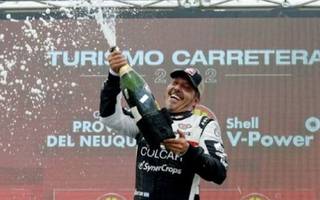 El festejo de Gastón Mazzacane en lo más alto del podio de la carrera del TC, en Neuquén / prensa ACTC