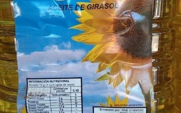 "Prohíbase la elaboración, fraccionamiento y comercialización en todo el territorio nacional y en las plataformas de venta en línea el producto "Aceite de girasol, marca: Aceitera Luna, Fraccionado por Aceitera Luna SRL, Rodríguez Peña 2338, San Martín, provincia de Buenos Aires", dice la resolución 1819/2022 publicada en el Boletín Oficial, por carecer de registros tanto el establecimiento como el producto "resultando ser en consecuencia productos ilegales".