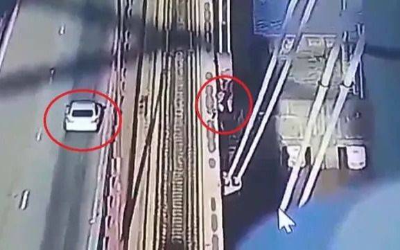 En el video de las cámaras de seguridad del complejo ferrovial quedó registrado el momento en que sobre el puente Urquiza se detiene un vehículo blanco del cual se bajan dos personas que comienzan a caminar hacia la barandal del puente, sorteando la vía del ferrocarril, para luego arrojarse al mismo tiempo.