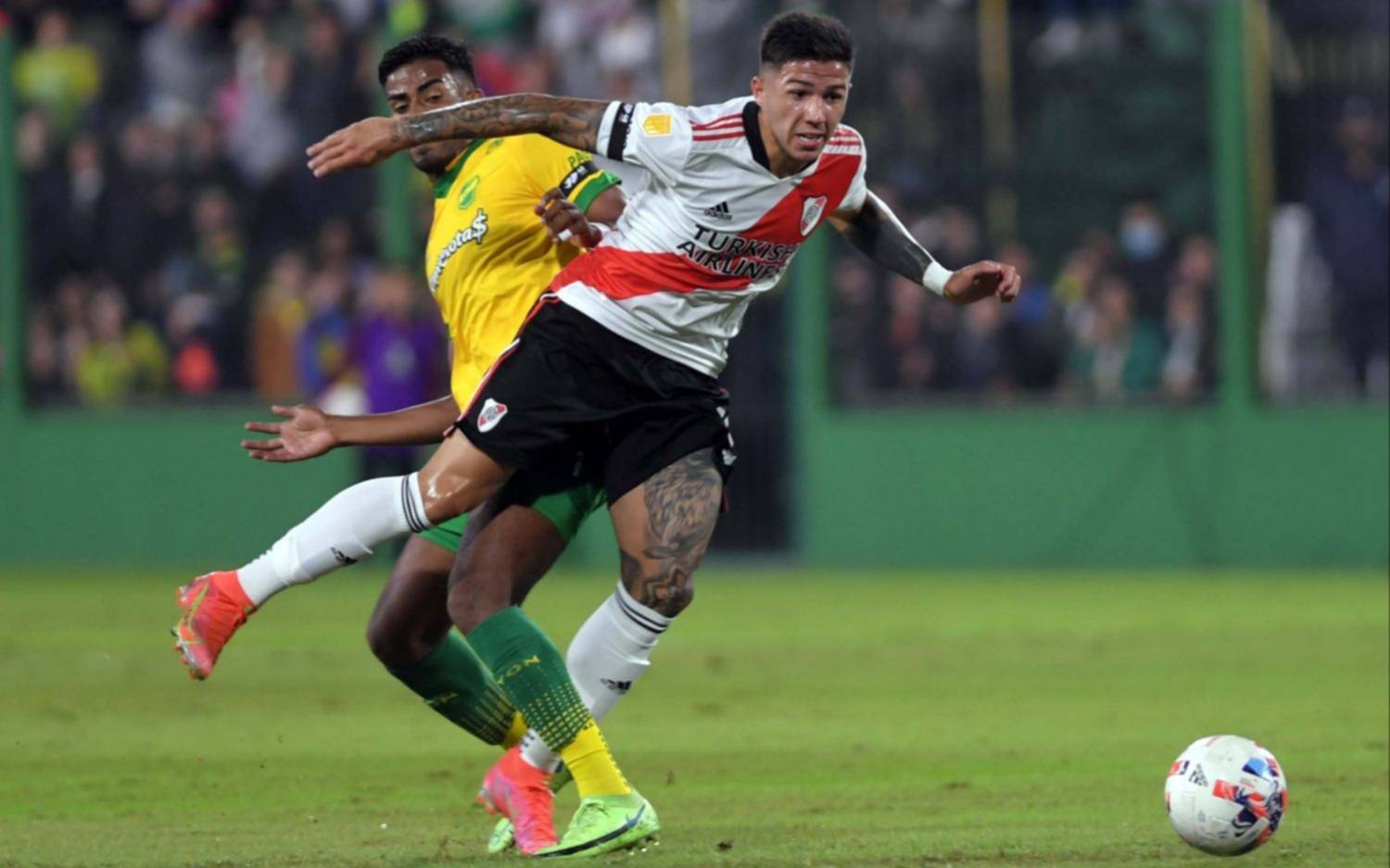 Enzo Fernández marcó la apertura para el "Millonario" a los 40 minutos del primer tiempo; en el segundo Santiago Simón aumentó a los 18m y descontó Walter Bou para el "Halcón", a los 27m.