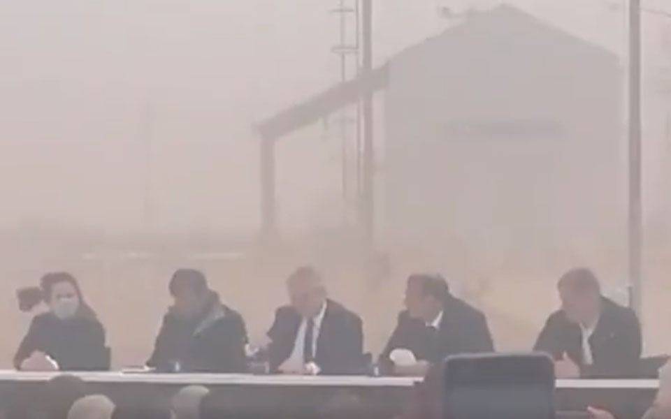 El presidente Alberto Fernández encabezó este mediodía en el yacimiento Loma Campana en Vaca Muerta, provincia de Neuquén, la puesta en marcha de la construcción del gasoducto “Presidente Néstor Kirchner”. En pleno acto, los funcionarios pasaron un momento incómodo cuando se desató una tormenta de viento y tierra que los tapó y les voló los papeles de la mesa dispuesta.