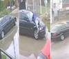 VIDEO. Un BMW chocó a un auto estacionado en Berisso y arrastró arriba del capot al dueño