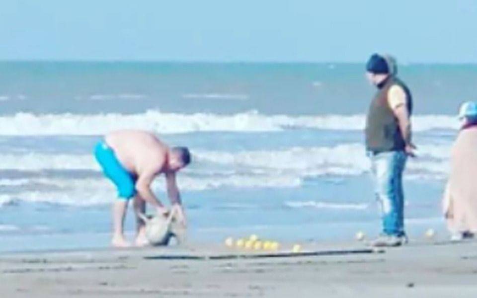 En las últimas horas se viralizó un video en las redes sociales de distintos proteccionistas de la fauna y del medio ambiente como Ecos de Mar, Fundación Fauna Argentina y Activistas Animales del Partido de la Costa, entre otras, para repudiar el accionar de un hombre que carga en sus hombros un delfín Franciscana que estaba sobre la arena del balneario situado a la altura de la calle 79 y que se lo lleva envuelto en una frazada.