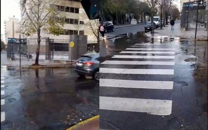 La misma abarca toda la esquina e impide el libre paso de los transeúntes. Como se puede ver en las imágenes, los automóviles que circulan por la zona deben atravesar el mar de agua que se ganó la calle.