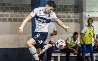Eric Ramírez enfrenta a Durso. Hubo fútbol en Abasto / prensa Gimnasia