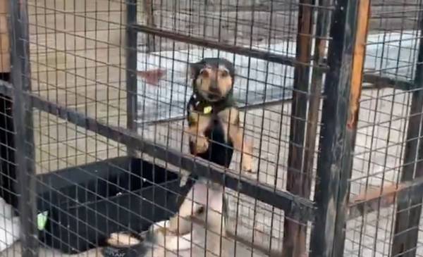 En las imágenes difundidas se ve cómo el perro salta y ladra desesperado, mientras Nora se acerca a él. Está encerrado en una jaula que tiene dos compartimentos, uno al aire libre y otro cerrado. Luego, se lo ve afuera del canil jugando con una pelota y con un abrigo, dadas las condiciones climáticas.