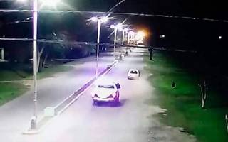 De acuerdo a las imágenes de las cámaras de seguridad instaladas por los propios vecinos, en una primera secuencia registrada a las 0.58 se observa que una Toyota Hilux negra y con los vidrios polarizados frenó frente al portón de ingreso al barrio y un patrullero sin la sirena encendida lo chocó del lado del acompañante.