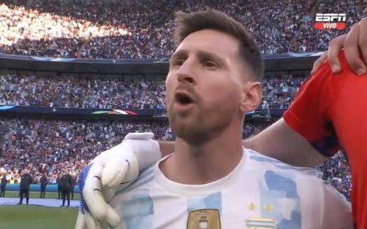 Emocionante momento se vivió en la previa de Argentina-Italia en Wembley. Fue el momento del Himno Nacional, con Lionel Messi y Lionel Scaloni cantándolo con todo en tierras inglesas.