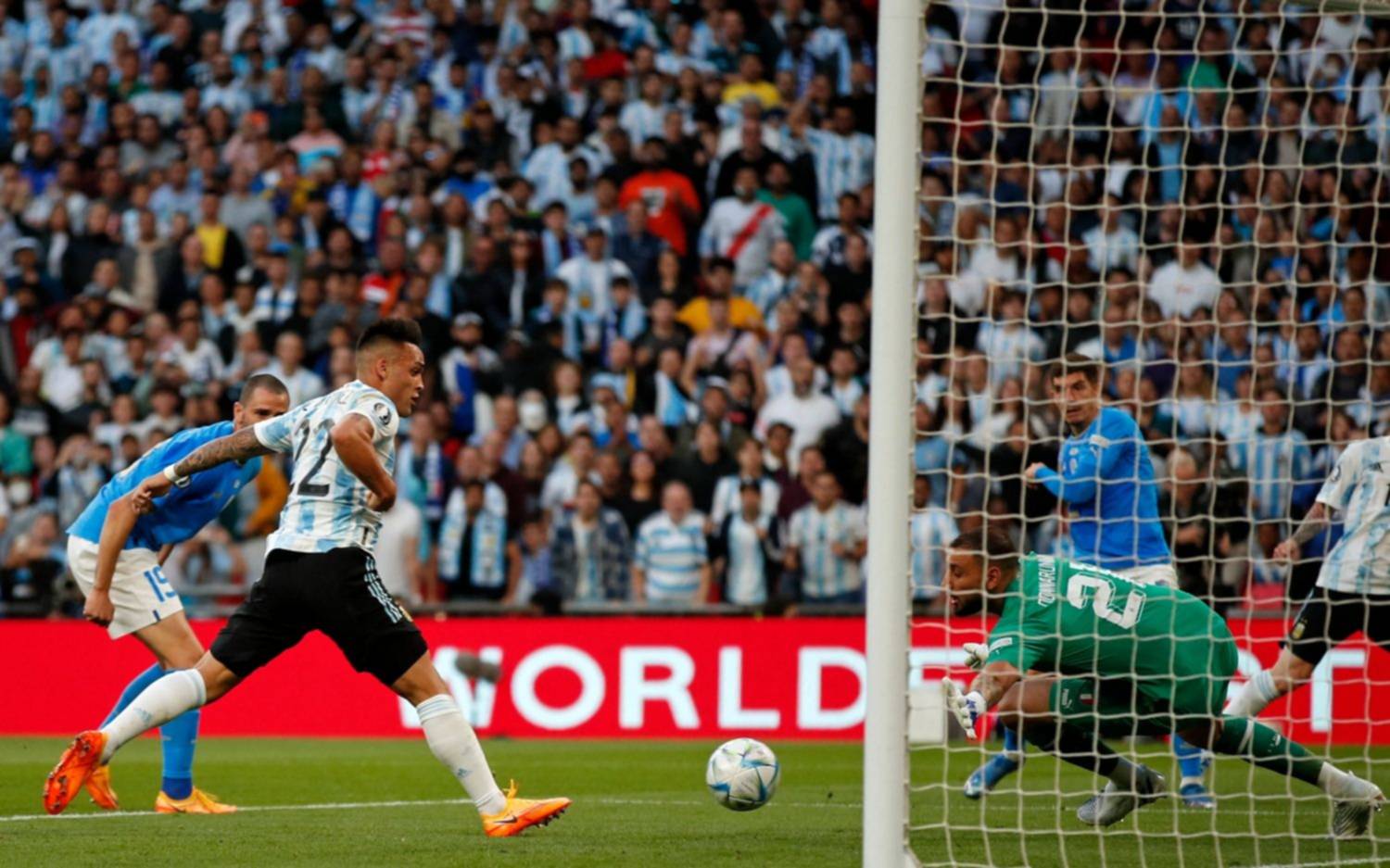 En la Finalissima jugada en el mítico estadio de Wembley Argentina empezó como dominador, Italia lo equilibró y exigió a Emiliano Dibu Martínez, pero a los 27 minutos del primer tiempo Lionel Messi frotó la lámpara: armó una apilada por izquierda y su buscapié lo empujó Lautaro Martínez, el goleador de la era Scaloni.