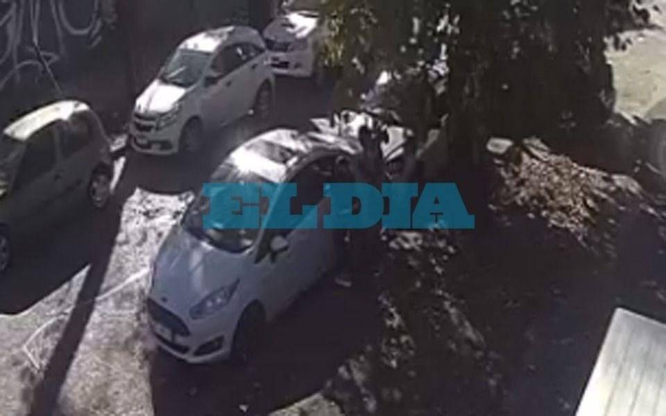 Fueron dos delincuentes los que quedaron grabados en primer plano robando “como si nada” la rueda de un Ford Fiesta.