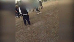 Luego del intercambio de golpes se puede advertir una terrible patada a uno de los "luchadores" cerca del rostro que derriba a su oponente y lo deja tendido en el piso. Es en ese momento en que cae que lo monta y continúa propinándole piñas, hasta que los "espectadores" deciden intervenir y separarlos.