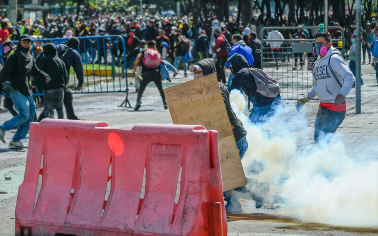 El líder de las manifestaciones, Leonidas Iza, se vio sorprendido mientras daba una entrevista que fue interrumpida por las fuertes detonaciones. “Eso es una mala señal realmente. Habíamos pedido a nuestras bases que simplemente podamos hacer una marcha pacífica”, declaró Iza, presidente de la poderosa Confederación de Nacionalidades Indígenas (Conaie).