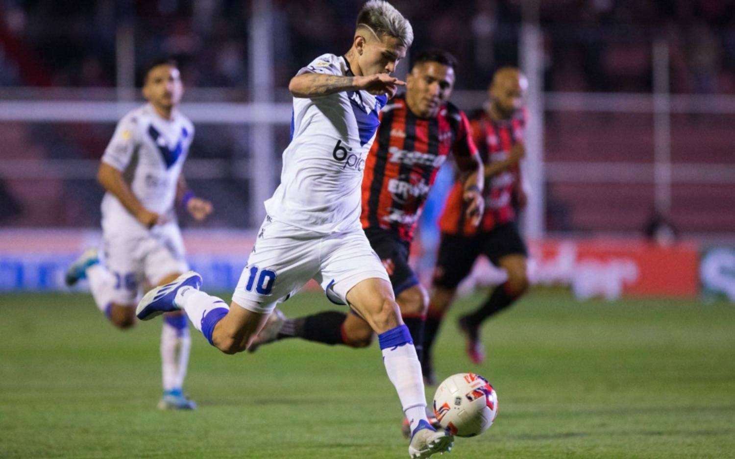 Patronato logró que Hoyos participara, aprovechando que Vélez le prestaba la pelota, hasta que a los 38m Diego García robó una pelota dentro del área, gambeteó un par de defensores y cayó. El árbitro, Jorge Baliño, como primer postura le dijo que se levantara, pero minutos después fue llamado por el VAR, chequeó la jugada y cobró penal en favor de los paranaenses. El ex Independiente Jonathan Herrera tomó la ejecución, "fusiló" a Hoyos y le dobló las manos para convertir el empate.