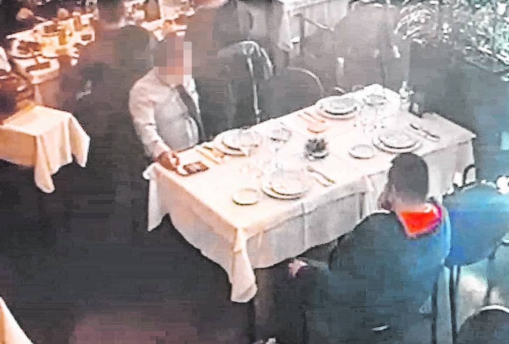 Vestido de saco y corbata, junto a un cómplice, un hombre simula ser cliente y le roba a los comensales, sin que ellos se den cuenta.