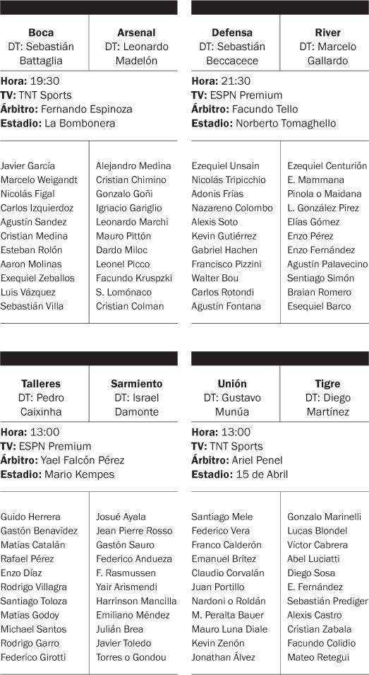 Por su parte, River, con varias bajas y con la defensa del título como premisa, visita esta noche a Defensa y Justicia, en su primer de la Liga Profesional. El encuentro comenzará a las 21.30 en el estadio Norberto “Tito” Tomaghello, con arbitraje de Facundo Tello y transmisión de ESPN Premium.