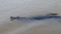 En el video se puede ver cómo el animal se encuentra nadando, muy cerca de tierra firme, yendo de un lado al otro. Se trata de una especie de cocodrilo saurópsido de la familia Alligatoridae que suele aparecer en las regiones subtropicales y tropicales de América del Sur y que puede alcanzar los tres metros de longitud.
