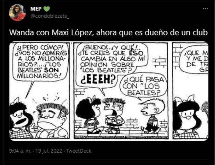 La noticia no pasó desapercibida en las redes sociales, donde rápidamente se hicieron eco con una ola de memes que tuvieron a su ex pareja, la modelo y manager Wanda Nara, y al jugador del Paris Saint Germain Mauro Icardi en el centro de la escena.