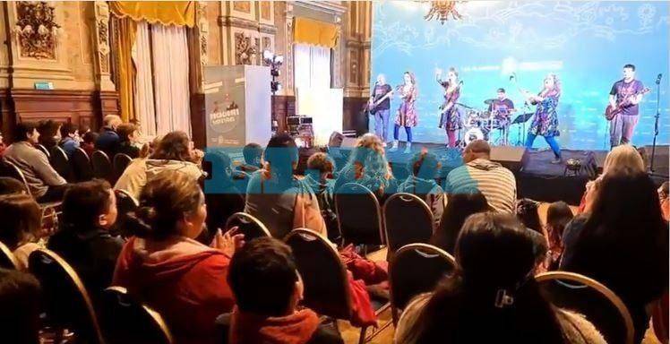 El Salón Dorado de la Casa de Gobierno de la provincia de Buenos Aires abrió sus puertas en este miércoles gris y lluvioso para que los más chicos disfruten del espectáculo a cargo de “Bigolates de chocote”, un ciclo musical.