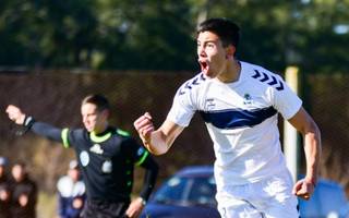 La boca llena de gol de tomás muro, autor del gol de la victoria del lobo, que llegó a la punta / Demian Alday
