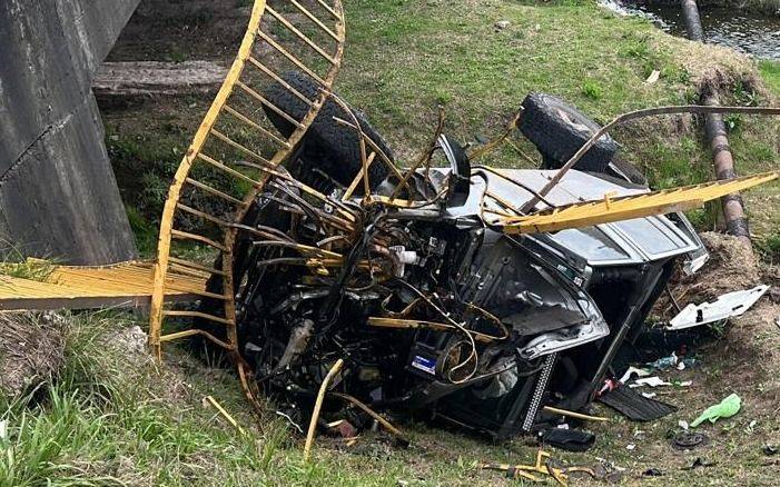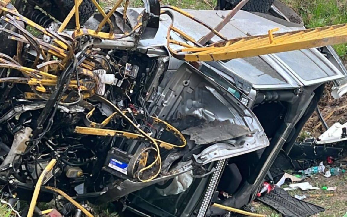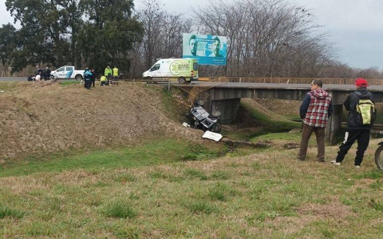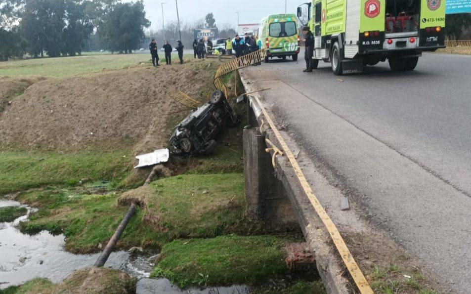 Se informó que a raíz del golpe contra los bordes metálicos de la estructura de contención del puente y por el vuelco, el rodado sufrió severos daños de carrocería.