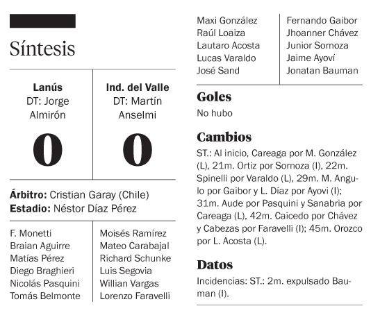Lanús hizo méritos para ganar, pero no encontró la manera de hacerlo. En el primer tiempo, a instancias del VAR, le anularon un gol de Maxi González. En la parte final, presionó, pero sin ideas.