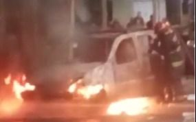 Tras un alerta vecinal por una camioneta estilo Ecosport color blanca, los bomberos de la zona se hicieron presentes de inmediato en el lugar y en cuestión de minutos apagaron el fuego.
