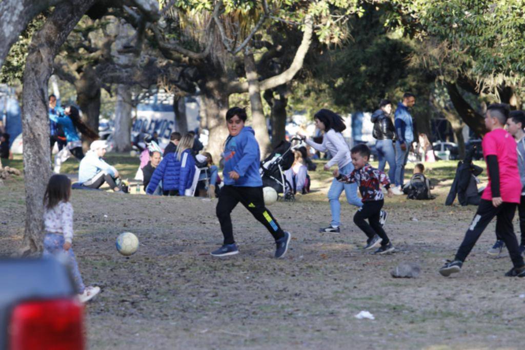 No pudo ser un domingo de invierno mejor para terminar el receso de medio año. El sol volvió a somarse y a pesar que la temperatura no fue muy alta, alcanzó para disfrutar el día al aire libre. Así, muchos chicos y adolescentes coparon las plazas, parques y cualquier espacio verde de la Ciudad, un día antes de volver a la rutina escolar. Hoy se retoman las clases en las escuelas.