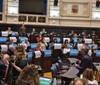 Carteles y una muñeca inflable en una picante sesión en Diputados