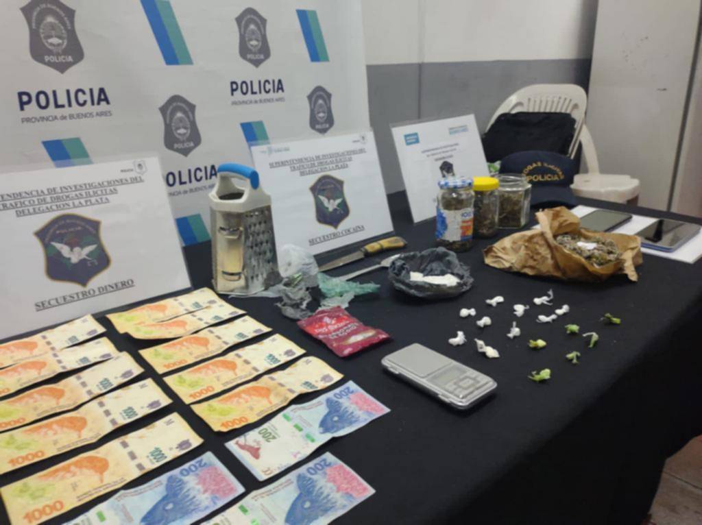 Además 10.600 pesos en efectivo, una balanza digital, recortes de nylon, sustancia de corte, dos celulares, un rallador y un cuchillo con vestigios de droga.
