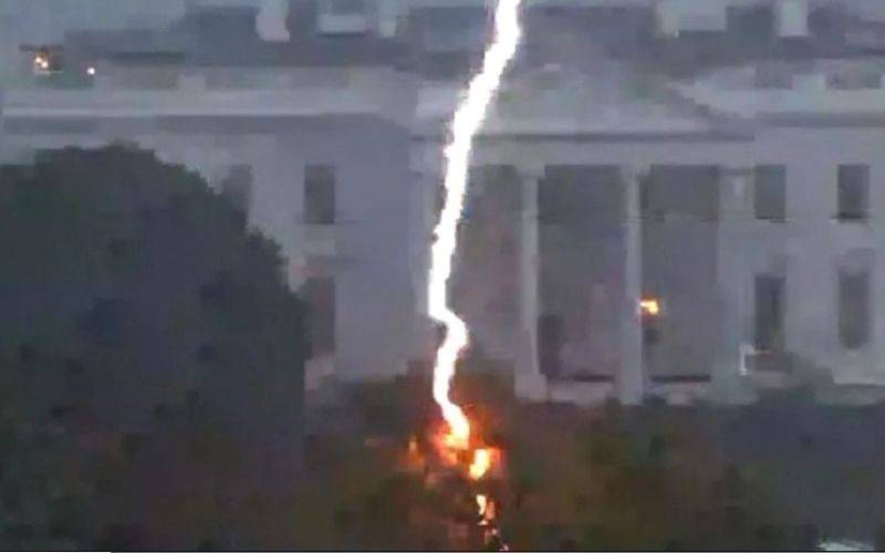 El rayo cayó cerca de la pequeña plaza de Lafayette, ubicada al otro lado de la calle de la Casa Blanca, alcanzando a una pareja de ancianos identificados como James Mueller, de 76 años, y Donna Mueller, de 75, precisaron las autoridades.