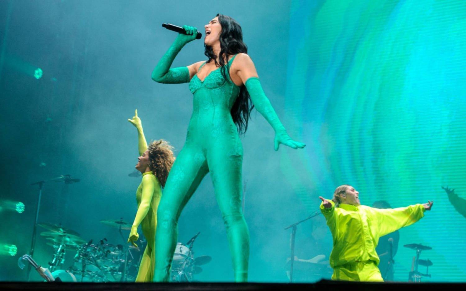 "Buenas noches, Buenos Aires. Aquí comienza la fiesta", dijo en castellano una Dua Lipa enfundada en un ajustado traje verde, uno de los tantos vestuarios que utilizó.