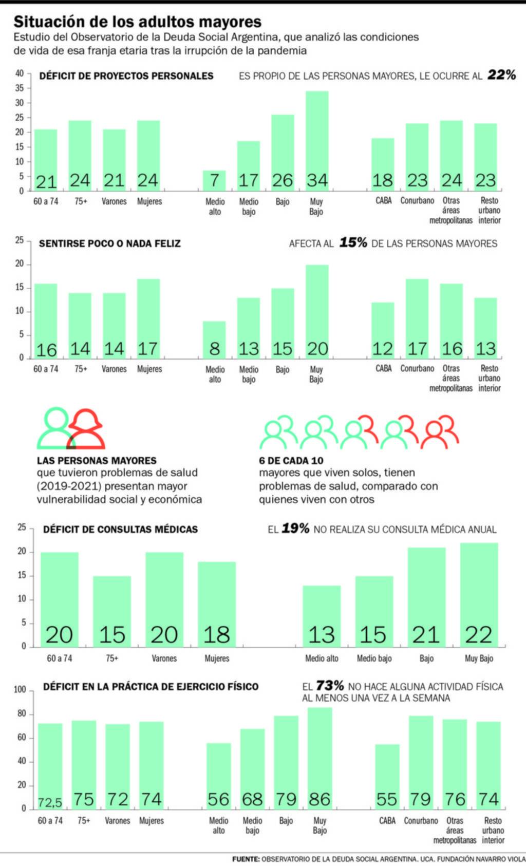 En ese sentido, un estudio difundido durante la última semana por la Universidad Católica Argentina (UCA) y la Fundación Navarro Viola indica que un 26 % de las personas mayores que viven en Argentina sufre “pobreza estructural”, entendida como la privación de dos o más necesidades básicas.