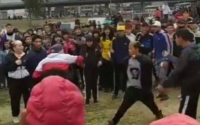 En medio de los festejos, una pelea entre dos jóvenes terminó de forma muy violenta, y terminó con imágenes captadas por los propios asistentes a la misma. Con facas en sus manos, comenzaron a intentar apuñalarse uno a otro, en una clara disputa, aunque ninguno habría terminado con heridas de gravedad. A los pocos minutos, alertados por la situación, efectivos policiales acudieron al lugar y allí comenzó la "bataola".