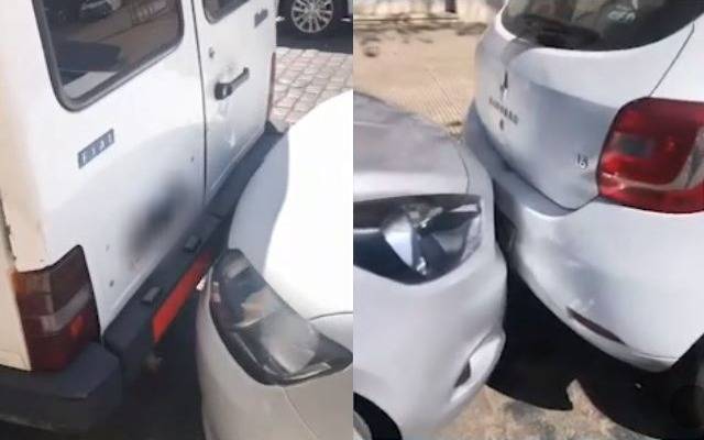 “Me clavaron dos autos”, menciona indignada la mujer que, para protegerse de represalias, prefirió reservar su identidad. Su vehículo es un Renault Sandero color blanco y quedó atrapado entre una camioneta Ford Fiorino blanca y un Ford Ka de cinco puertas color gris.