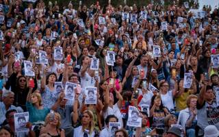 Emocionados y con lágrimas en los ojos, Graciela y Silvino Báez Sosa encabezaron el acto en Dolores acompañados por una multitud / télam