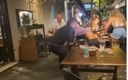 Esto hizo que un empleado de seguridad del lugar lo agrediera físicamente, como se pudo ver en las imágenes. Todo sucedió en la vereda del local, a centímetros de donde estaban comiendo los clientes.