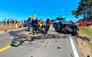 Según el parte oficial de bomberos de Maldonado, "hubo una colisión frontal entre dos vehículos livianos, en la Ruta N° 104, esquina Las Ballenas, próximo a Manantiales".